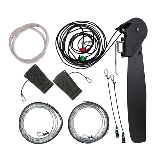 Die Steuervorrichtung erleichtert das Kurs halten bei Seitenwind, Wellen und Strömungen. Alleine- und vor allem auch zu zweit ist die Steuervorrichtung besonders empfehlenswert. Mit den Fußpedalen wird einfach die Richtung gesteuert. Die Paddelkraft kann zu 100% in Vortrieb umgesetzt werden, anstatt koordiniert mit den Doppelpaddeln steuern zu müssen.